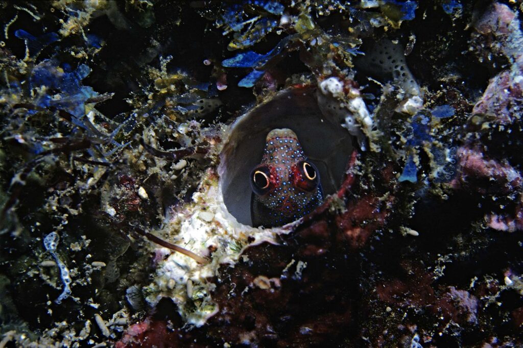Nikon made a doublet close-up lens that works in front of its 28mm f/3.5, 35mm f/2.5, and 80mm f/4.0 lenses (focusing and framing were with a cumbersome external attachment). In addition, a huge variety of Nikonos accessories (including lenses) were sold by other manufacturers. That is for a separate post, but in closing, here are some macro photographs taken either with Nikon’s close-up adapter, or with extension tubes made by Sea & Sea.